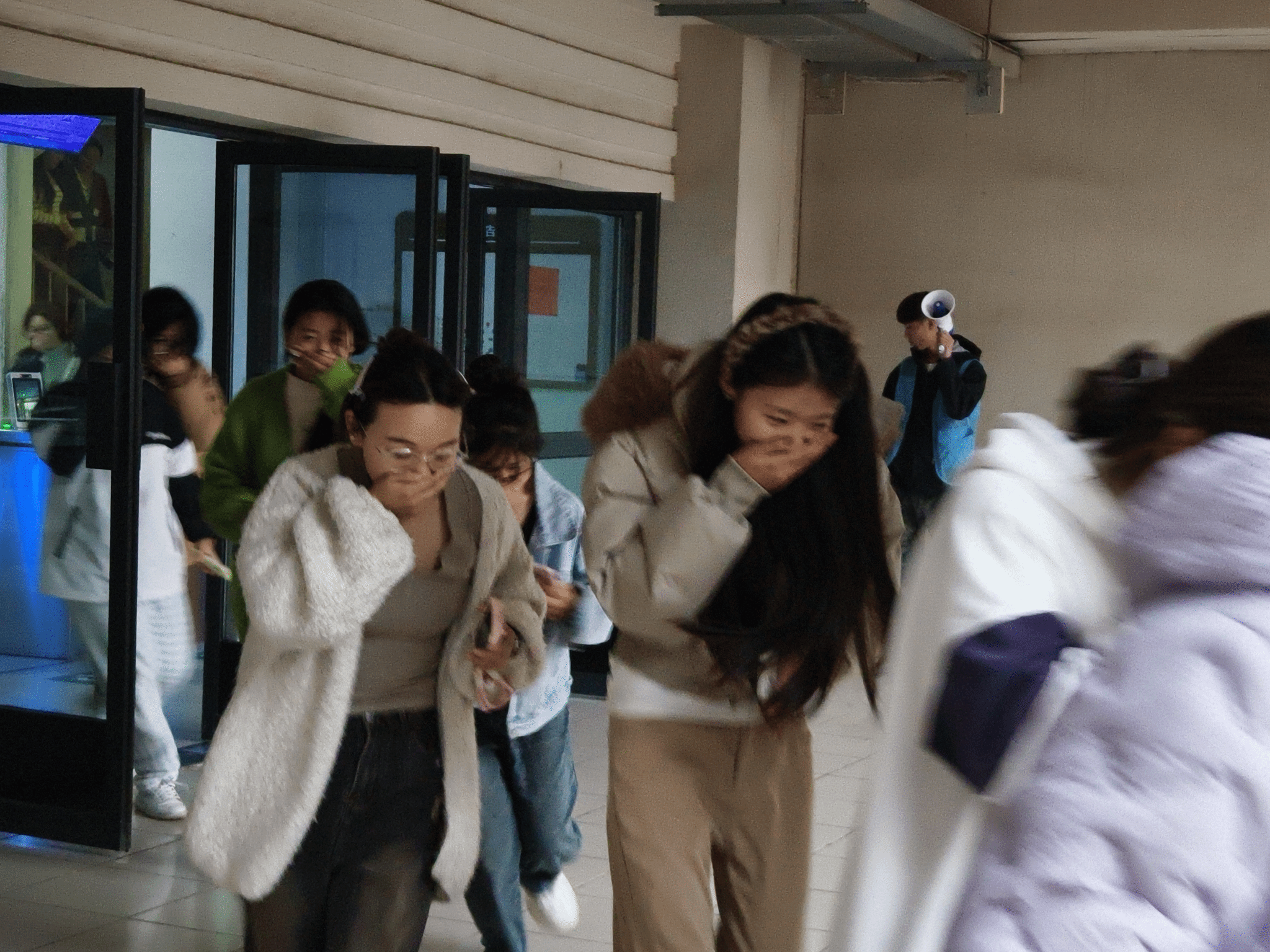 活动当天,随着刺耳的消防警报声划破长空,消防演练正式拉开帷幕。模拟浓烟迅速蔓延,志愿者们立即就位引导疏散,并不断提醒同学们“捂住口鼻、弯腰低姿、有序撤离”。同学们在老师和志愿者的引导下,严格按照预定疏散路线,迅速、有序地向安全区域集结。整个疏散过程紧张而不慌乱,高效而有序。充分展现了学院学子良好的心理素质和应急反应能力。