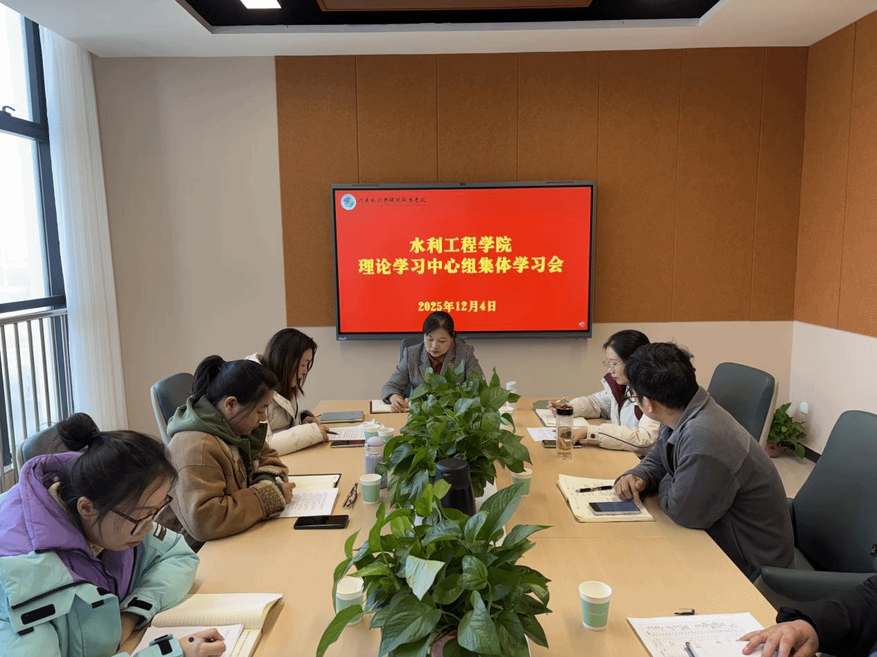 党课后,李校长继续深入基层,参加并指导了水利工程学院党总支理论学习中心组的集体学习。本次学习的主题是“深入学习贯彻党的二十届四中全会精神”。会议由学院党总支书记张翼主持。