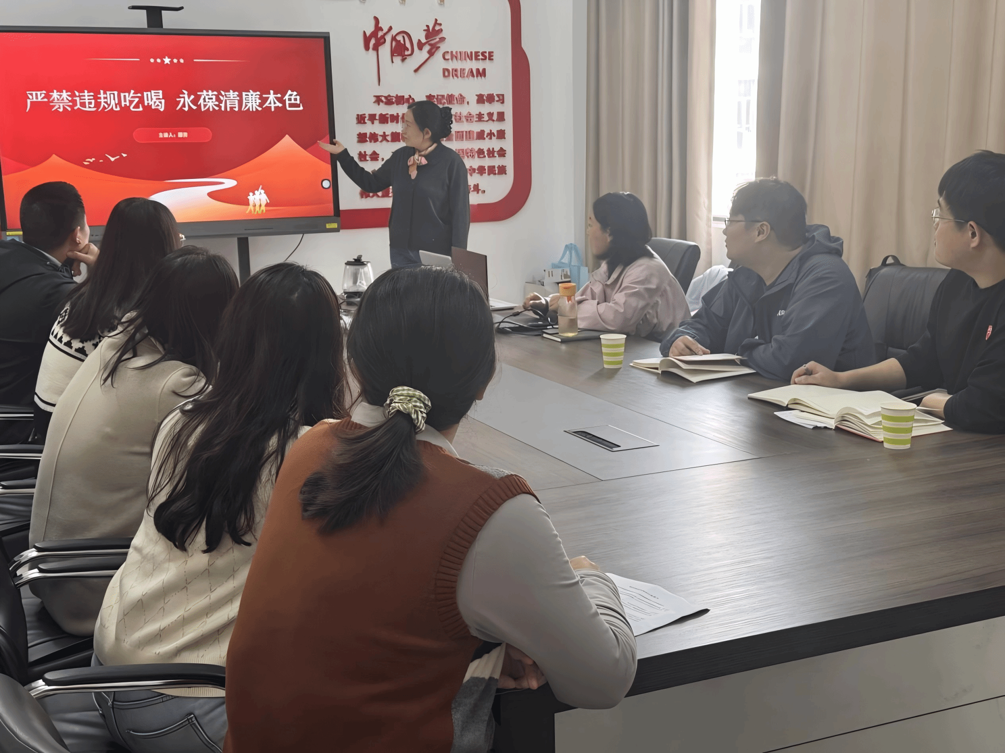 授课过程中,邢芳同志结合近年来通报查处的违规违纪典型案例,深刻剖析了节日期间易发多发的廉洁风险。她强调,节日是“四风”问题易发高发期,也是对党员干部党性修养和纪律意识的考验期。全体党员务必时刻保持清醒头脑,高度警惕违规吃喝、违规收送礼品礼金等突出问题,切实增强纪律意识和规矩意识,做到知敬畏、存戒惧、守底线,坚决杜绝“节日腐败”。