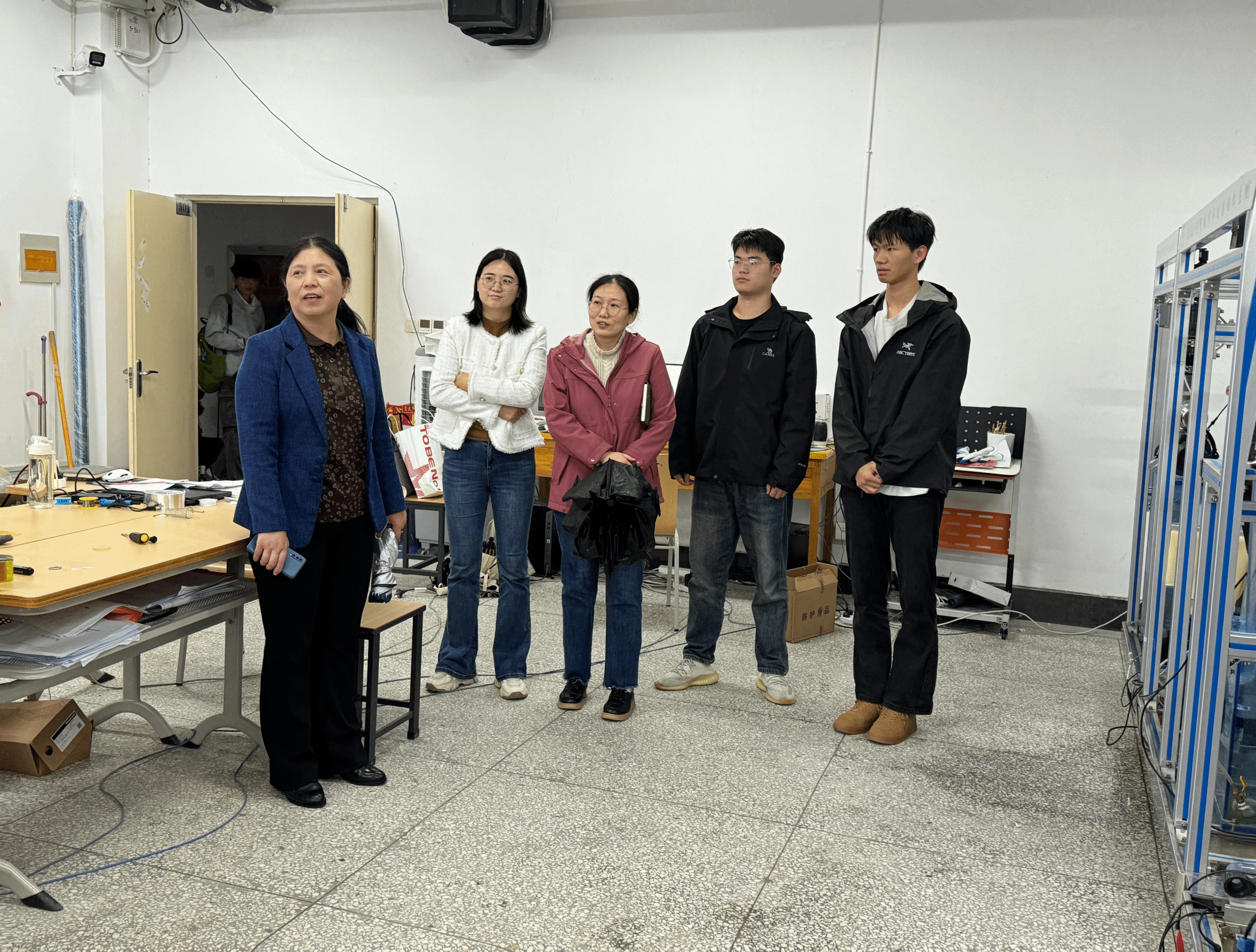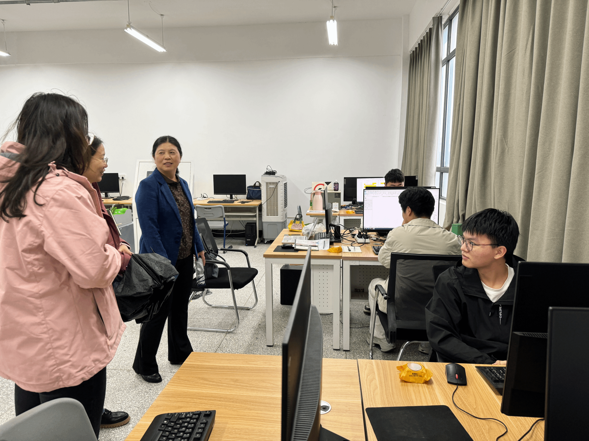 在训练现场,张竟超副校长认真观摩了学生的实操训练,详细了解了各赛项的备战进度、技术难点及后勤保障等情况。她与师生们进行了亲切交流,对他们放弃休息时间、全力以赴投入集训的拼搏精神给予了高度赞扬。