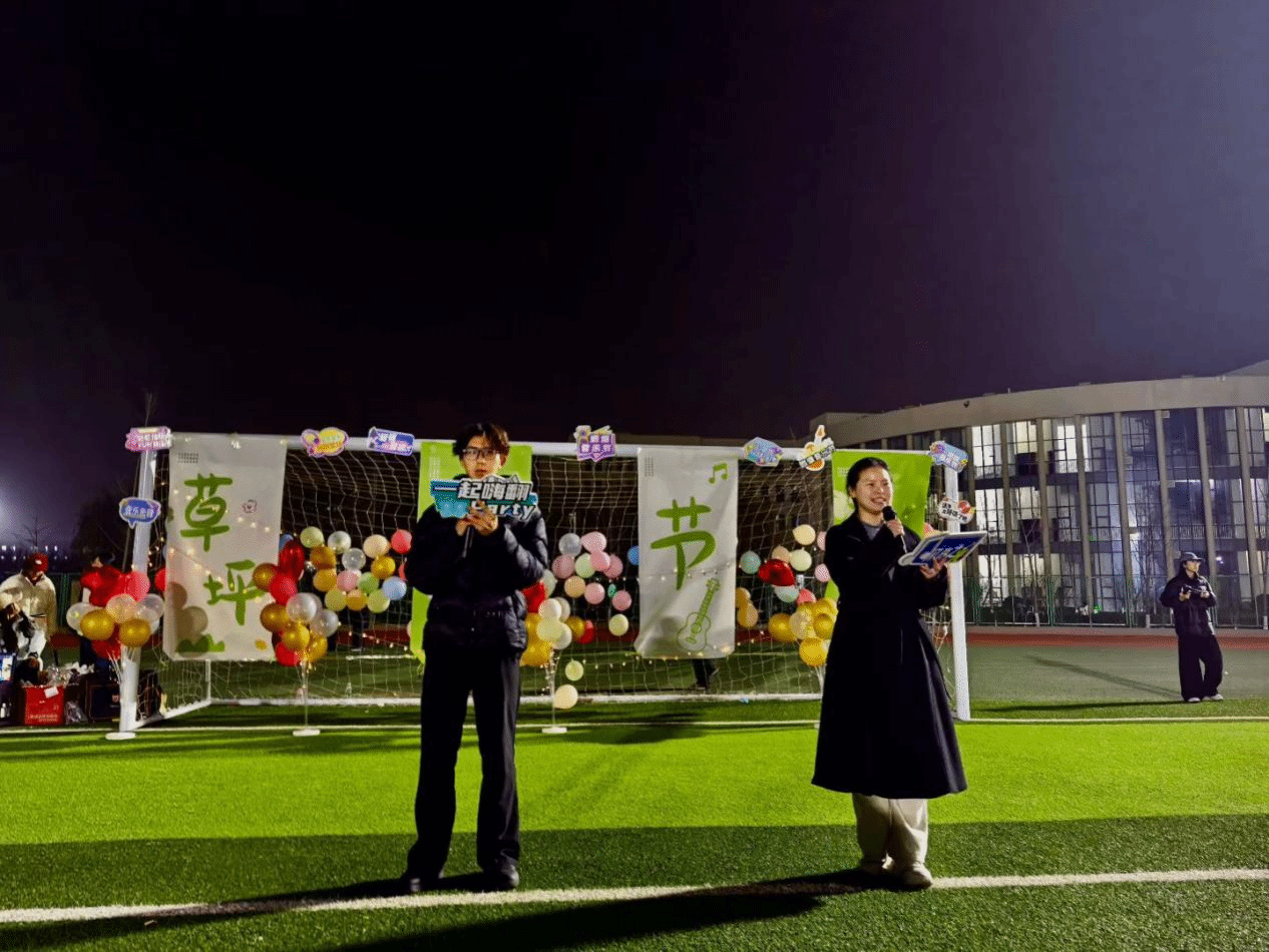 暮色中的绿茵场荧光闪烁,师生齐聚,氛围温馨热烈。音乐节在众人的期待中拉开序幕,歌声与欢笑贯穿始终。歌曲演绎环节精彩纷呈:24智水2班袁振以《用背脊唱情歌》深情开场,25水工3班魏奥翔、李羽翔合唱的《手写的从前》旋律悠扬,24安管1班高灿宇带来的《天后》引发全场共鸣;随后,25水工5班石欣冉演唱的《有点甜》轻快甜美,24水电1班王宇瑞的《同手同脚》温暖真挚,24水建国际2班高子讯演绎的《最佳损友》情感深刻,24安管2班左勐娣的《想你时风起》温柔治愈,最后由24水工1班叶锦源以一首《我怀念的》细腻收尾,将现场氛围推向高潮。